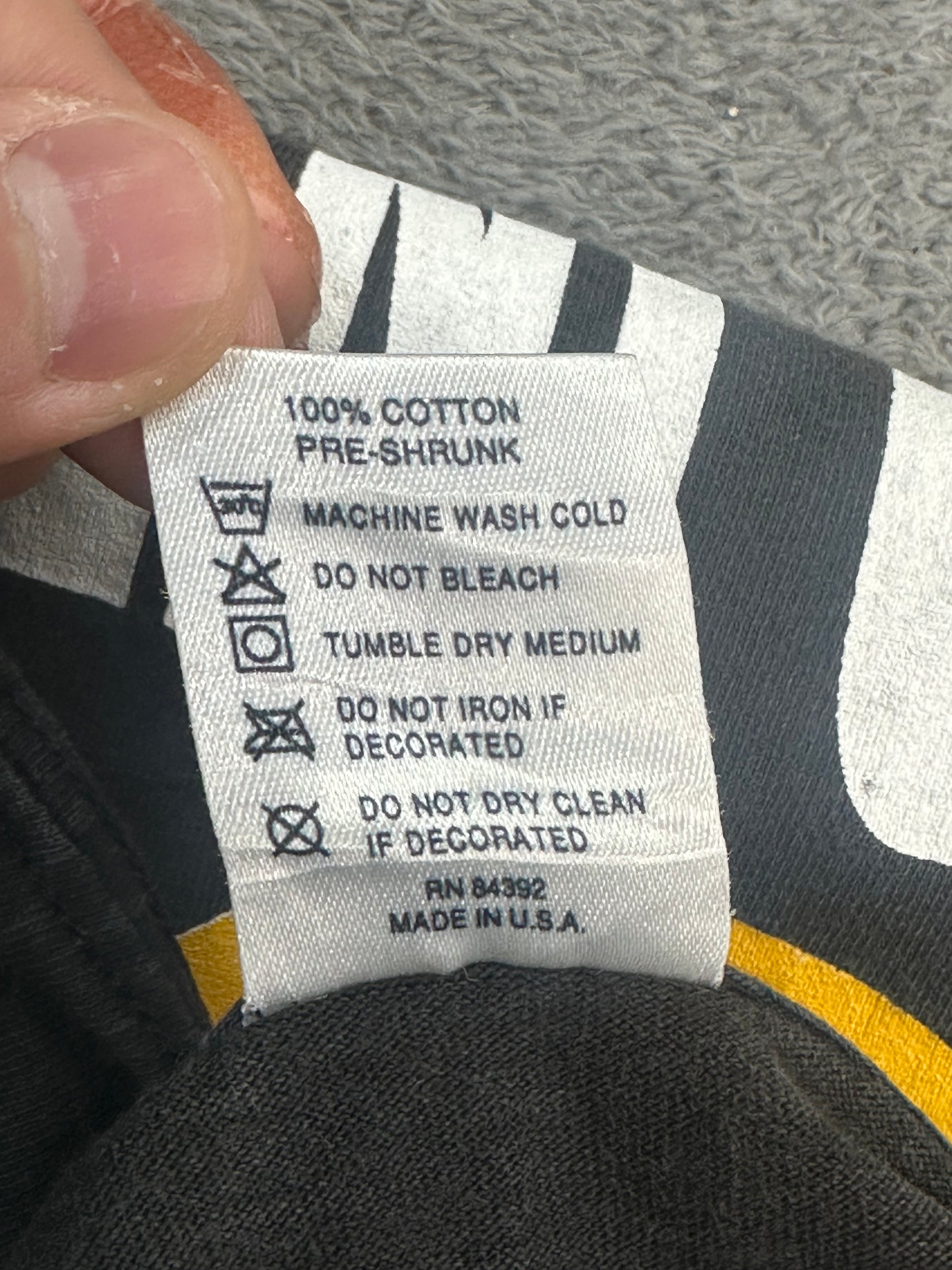 90년대 힙합 엔터 굿즈 제작 Gem 바디. 밑단 더블 스티치로 수선된 개체입니다. 핀홀과 데미지 존재합니다. 참고바랍니다.