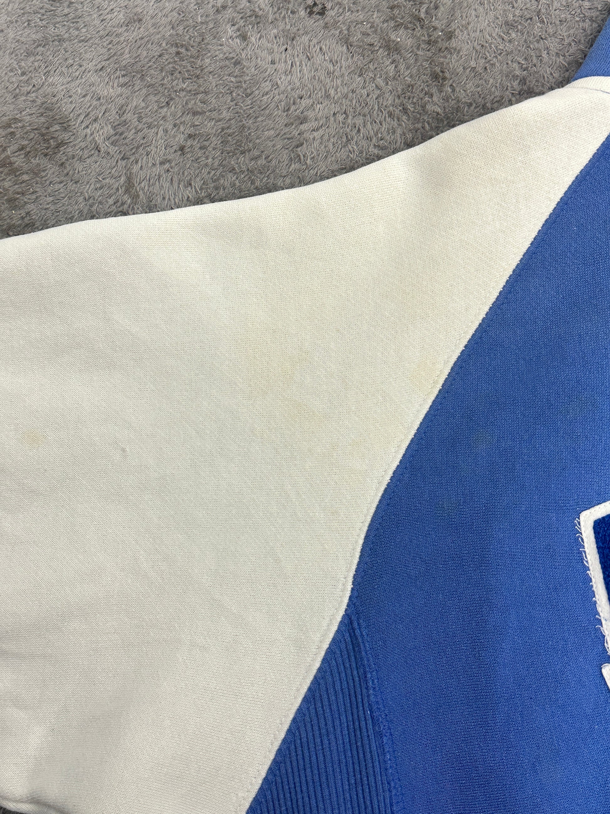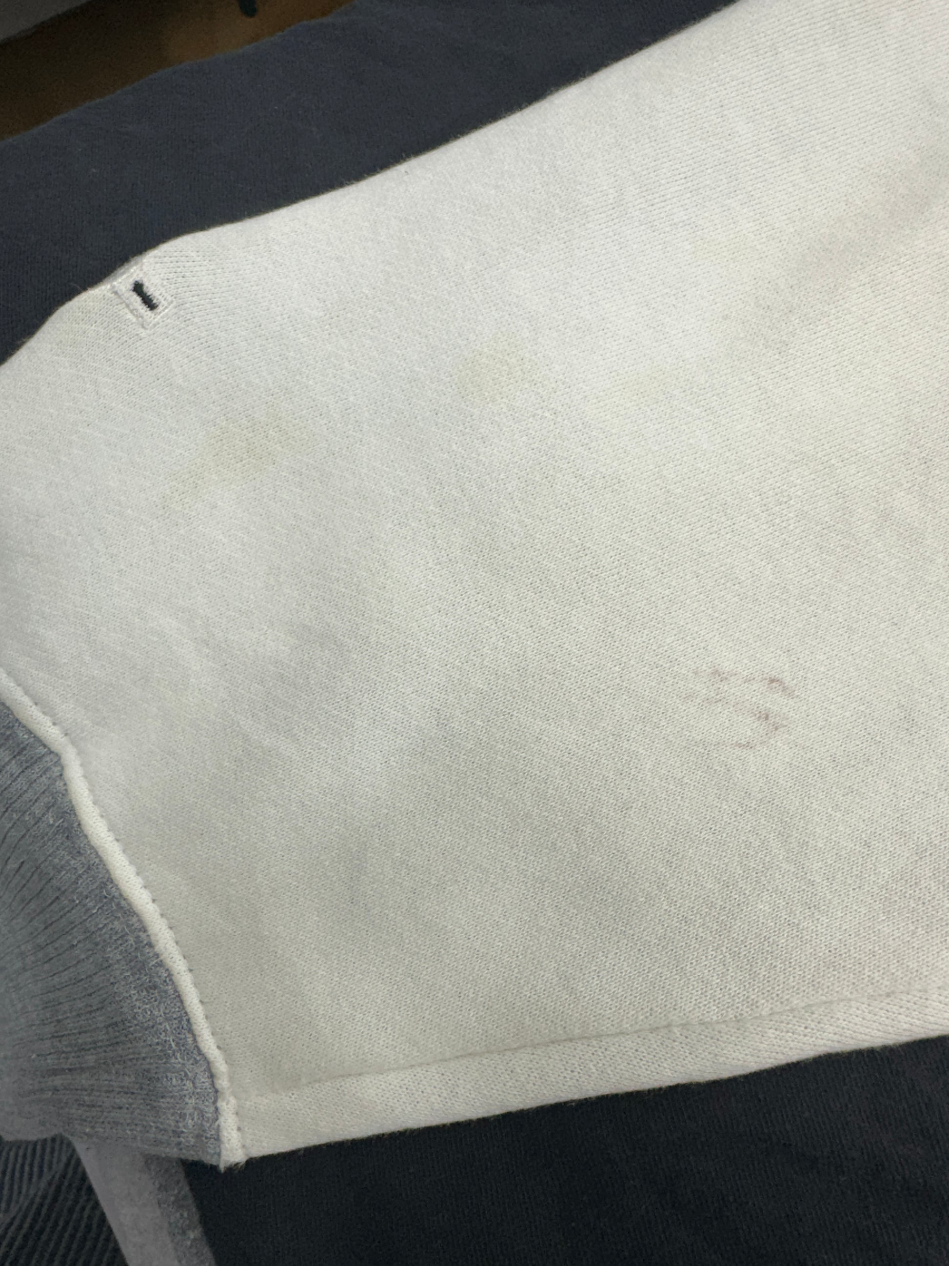 블루와 화이트 투톤 색감과 에일리언 워크샵 로고와 에일리언 지퍼가 매력적입니다. 팔 부분 오염 존재 외 전체적으로 좋은 컨디션입니다.