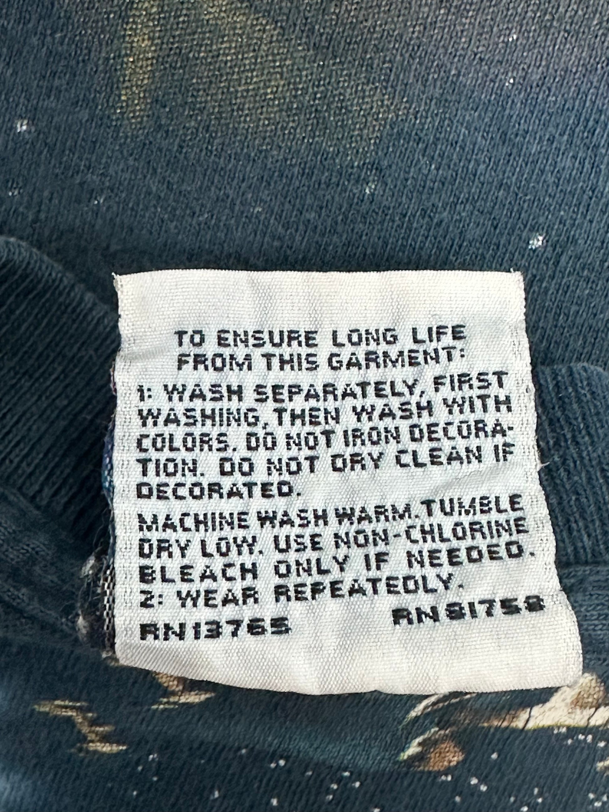 90년대 제작 개체 스타워즈 Ep1 타이다이 무비 티셔츠입니다. 스타워즈 Ep1 의 등장했던 다스몰과 루크 스카이워커의 어린시절 모습을 프린팅한 모습입니다. 타이다이 티셔츠를 유독 많이 다루는 뤼키드 블루 바디를 확인할수있습니다. 전체적으로 좋은 컨디션입니다.