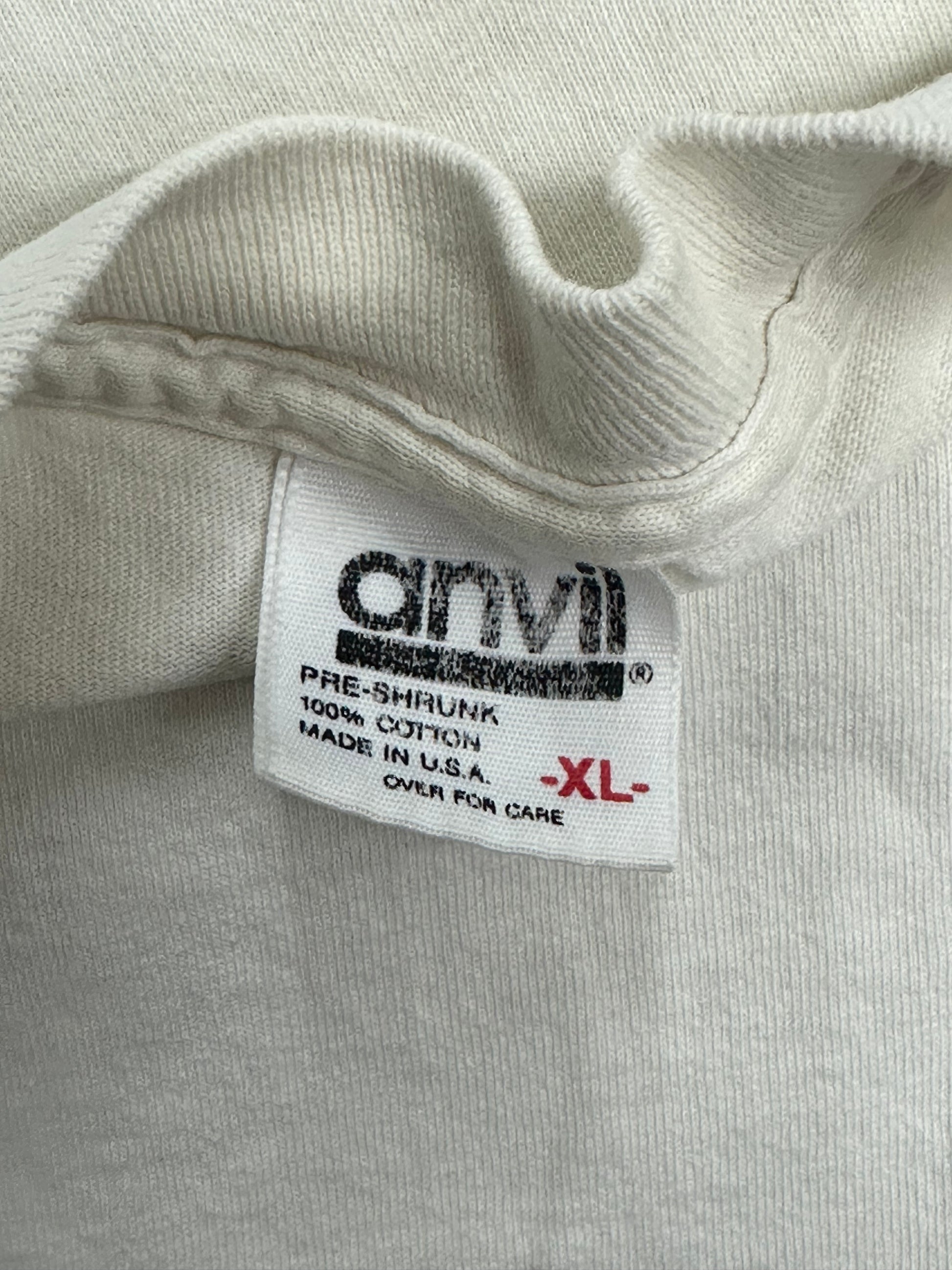 1990년도 제작 개체 그레이트풀데드 댄싱베어 롱슬리브입니다. 1990년도 8번째 라이브 앨범 발매 후 북미, 유럽 투어 티셔츠로 확인됩니다. 90년대 초기 엔빌 싱글스티치 롱슬리브 바디, 팔 부분 오염 외 전체적으로 좋은 컨디션입니다.